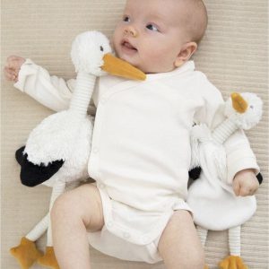 Voor pasgeboren baby’s zijn zachte knuffeltjes en rammelaars perfect. Ze zijn lekker knuffelbaar en maken geluidjes die een baby nieuwsgierig maken.